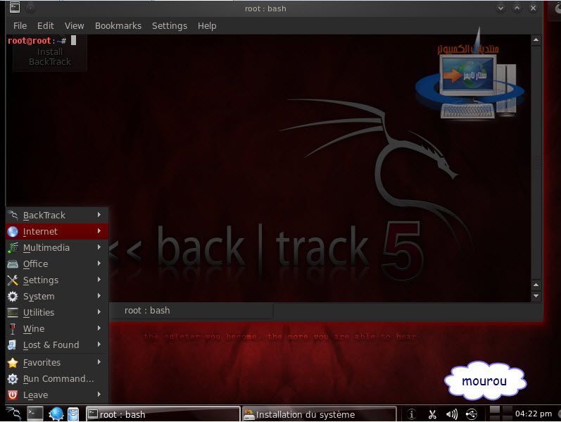 وصلنا إلى الخطوة الأخيرة والأهم في الموضوع : تتبيت نظام اللينكس توزيعة Back track5