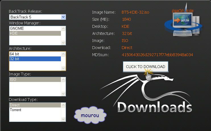 ندهب إلى الموقع الرسمي لتحميل توزيعة اللينكس Back Track 5